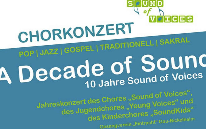 10 Jahre Sound of Voices – A Decade of Sound! Am 27. September um 19 Uhr feiern wir unser großes Jubiläumskonzert in der Pfarrkirche St. Martin in Gau-Bickelheim! Mit dabei: unsere SoundKids, die [...]
